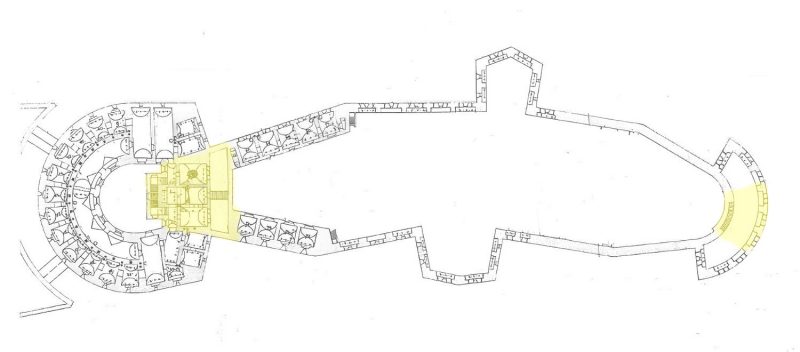 A Citadella alaprajza a most lebontott részek jelölésével (sárga színnel)